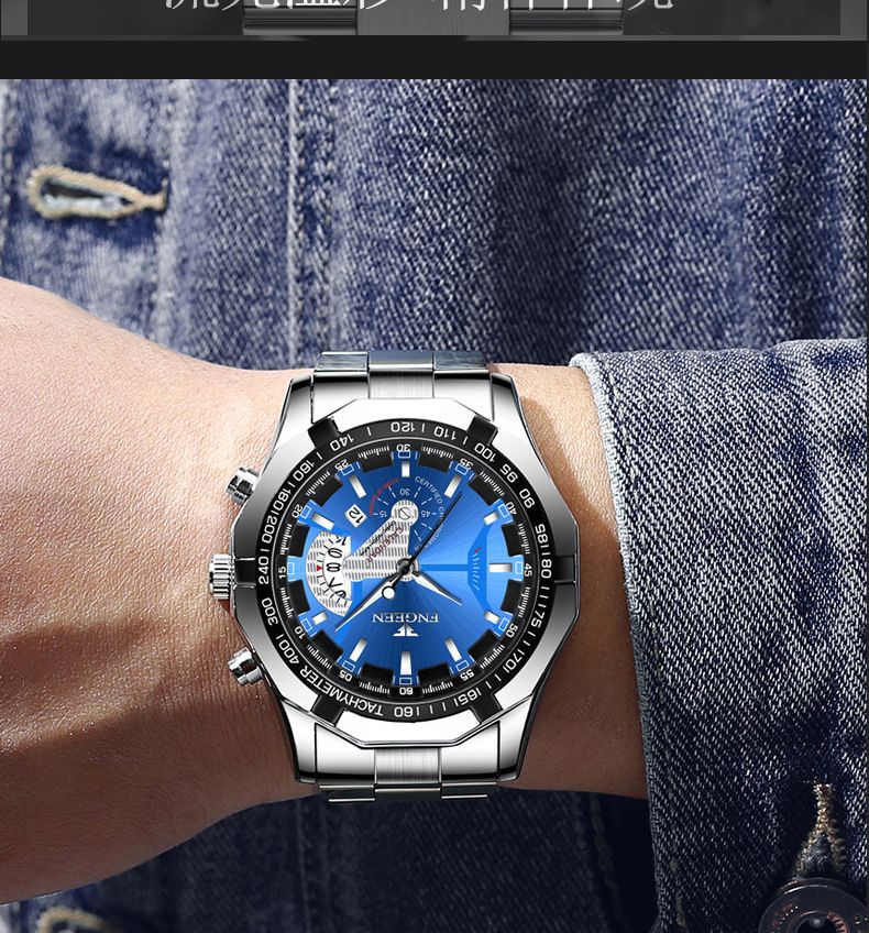 【美學新風尚】超大新日曆大錶盤男士手錶【白鋼藍面】一塊