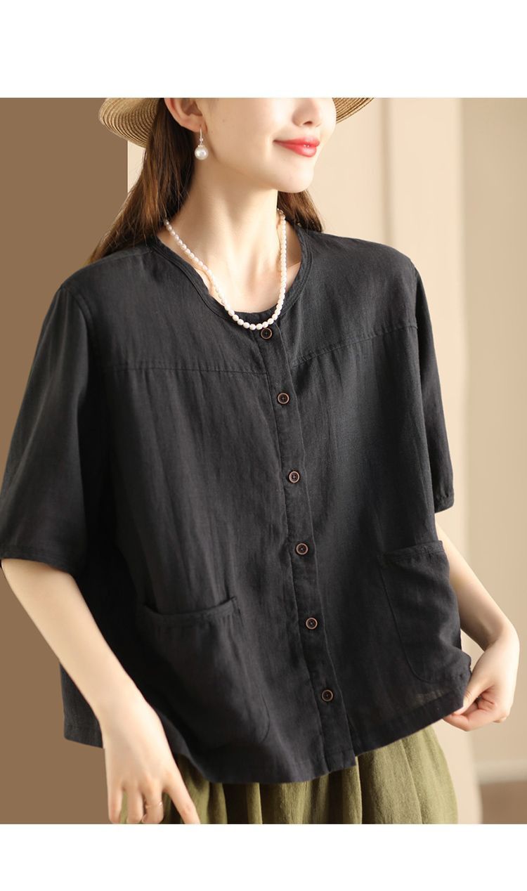 口袋設計復古氣質棉麻襯衫【黑色】+【卡其色】各一件(到手兩件,每件均價499元)