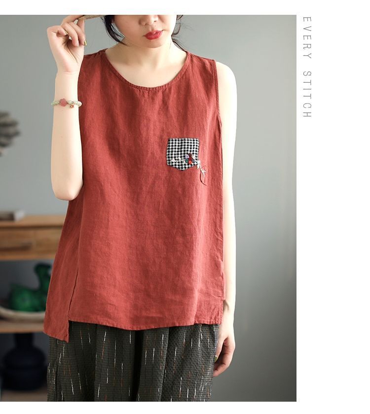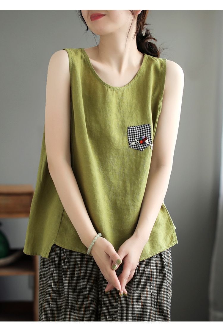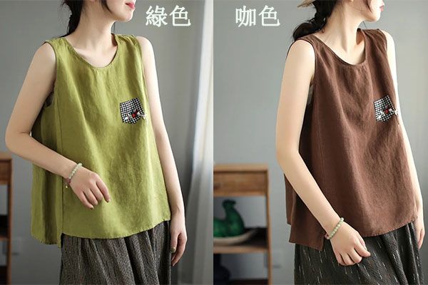 民族風拼接棉麻百搭背心【買一送一】綠色+咖色各一件(到手2件!每件均價499元!)
