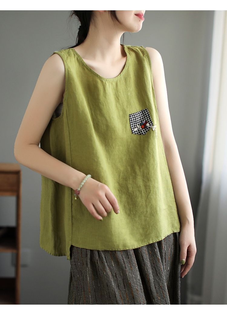 民族風拼接棉麻百搭背心【買一送一】綠色+黑色各一件(到手2件!每件均價499元!)