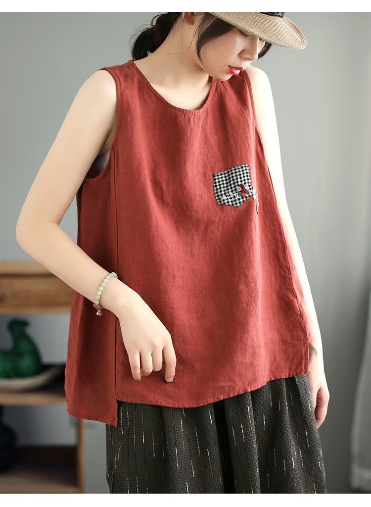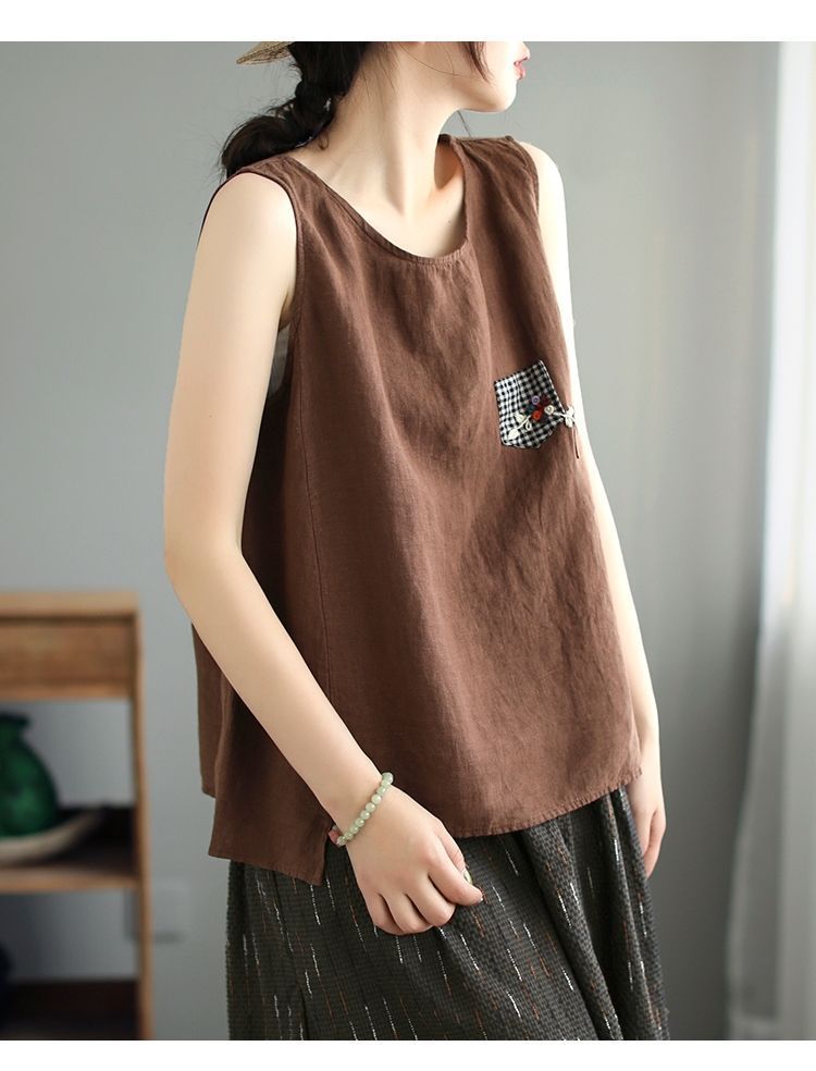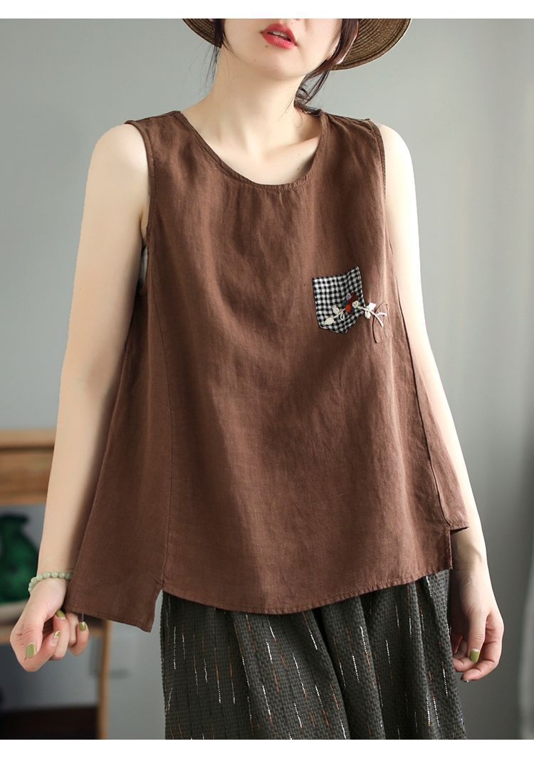民族風拼接棉麻百搭背心【買一送一】咖色+紫色各一件(到手2件!每件均價499元!)