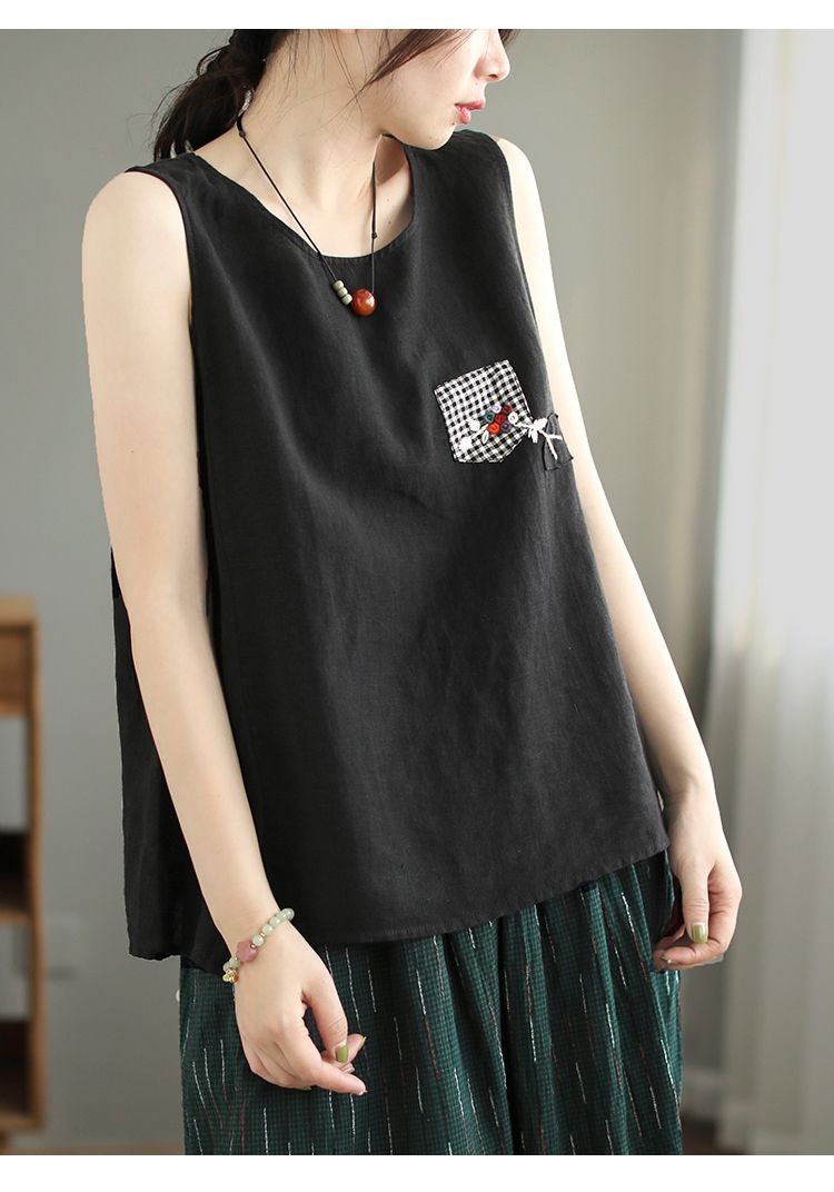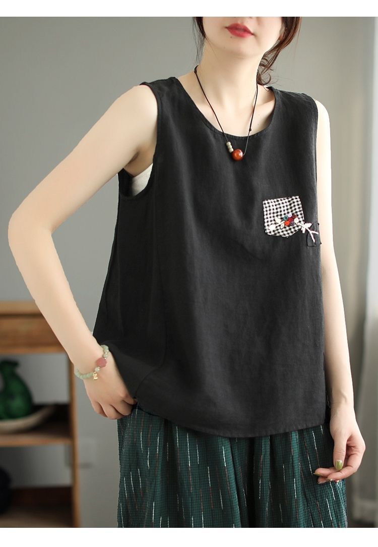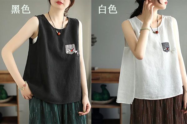 民族風拼接棉麻百搭背心【買一送一】白色+黑色各一件(到手2件!每件均價499元!)
