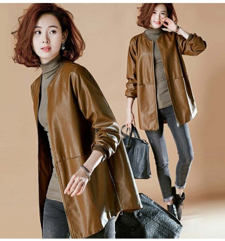 女士中長款寬鬆綿羊皮皮衣【棕色】一件