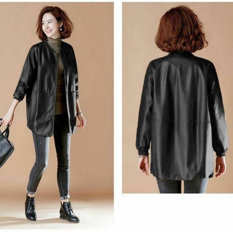 女士中長款寬鬆綿羊皮皮衣【黑色】一件
