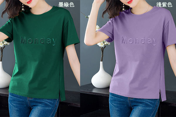 Monday字母簡約純色T恤【買一送二】墨綠+淺紫+胭脂紅各一件(到手3件!每件均價200元!)