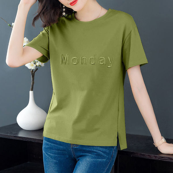 Monday字母簡約純色T恤【買一送二】牛油果綠+墨綠+淺紫各一件(到手3件!每件均價200元!)
