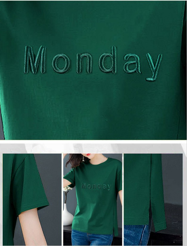 Monday字母簡約純色T恤【買一送二】牛油果綠+墨綠+胭脂紅各一件(到手3件!每件均價200元!)