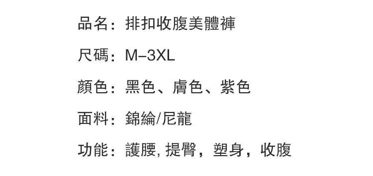 排扣收腹護腰美體內褲【膚色】+【紫色】各一件(到手2件,每件均價549元!)