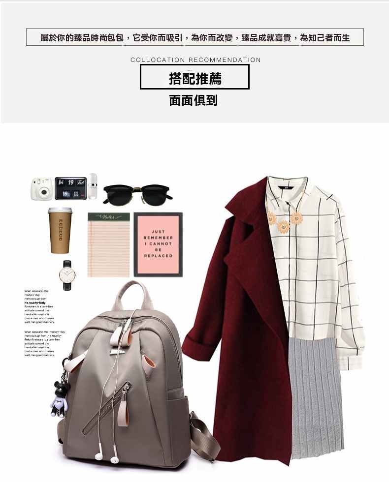 牛津布時尚潮流雙肩女包【卡其色】一組