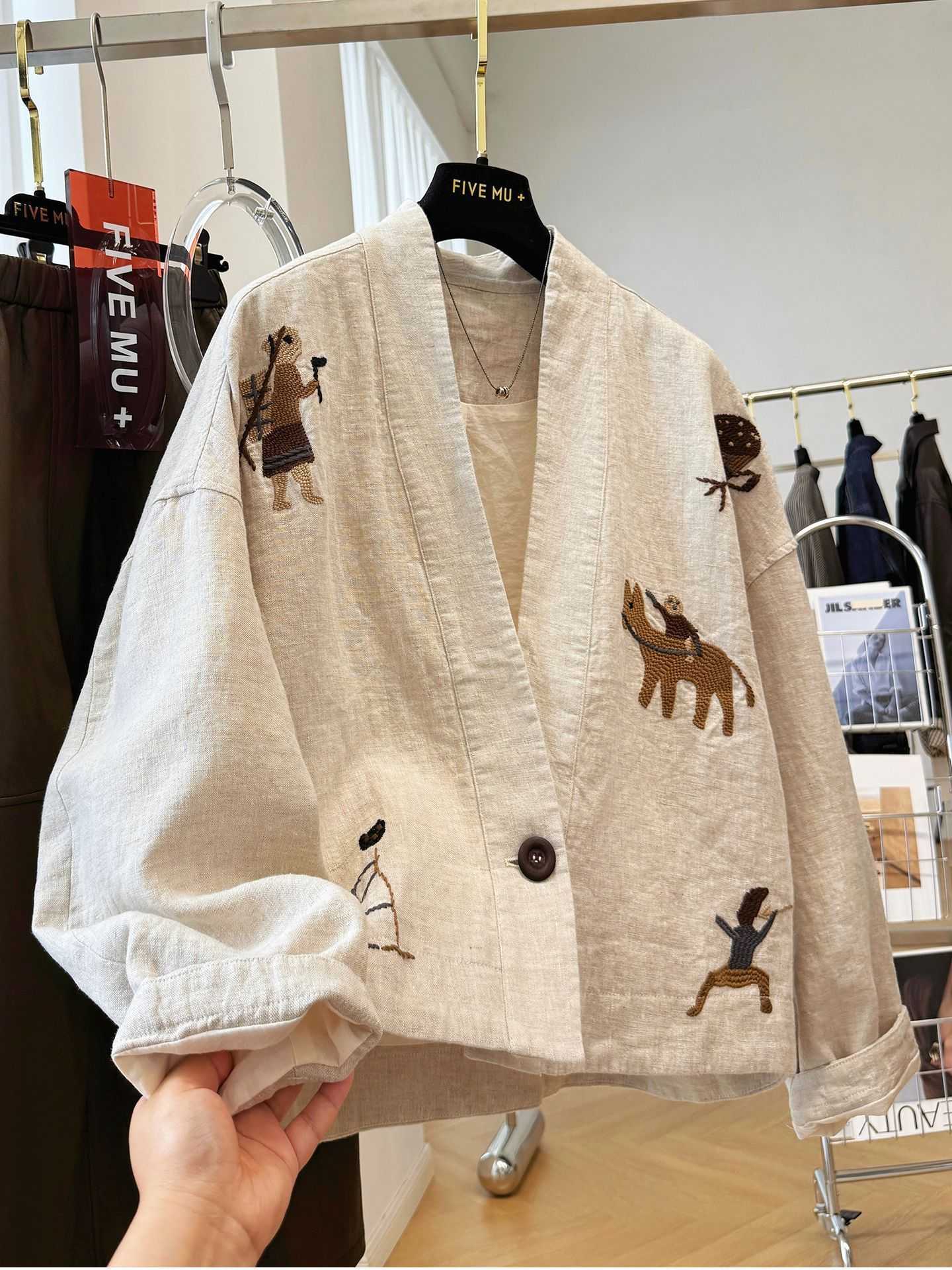【秋季上新!全台免運!】短款高級感重工刺繡棉麻外套
