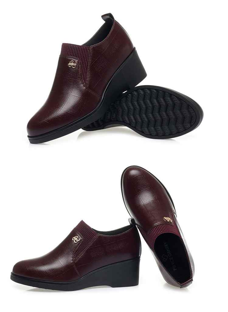 坡跟增高軟皮復古舒適女鞋【買一送一】【酒紅色】2雙(到手兩雙,每雙均價549元!)