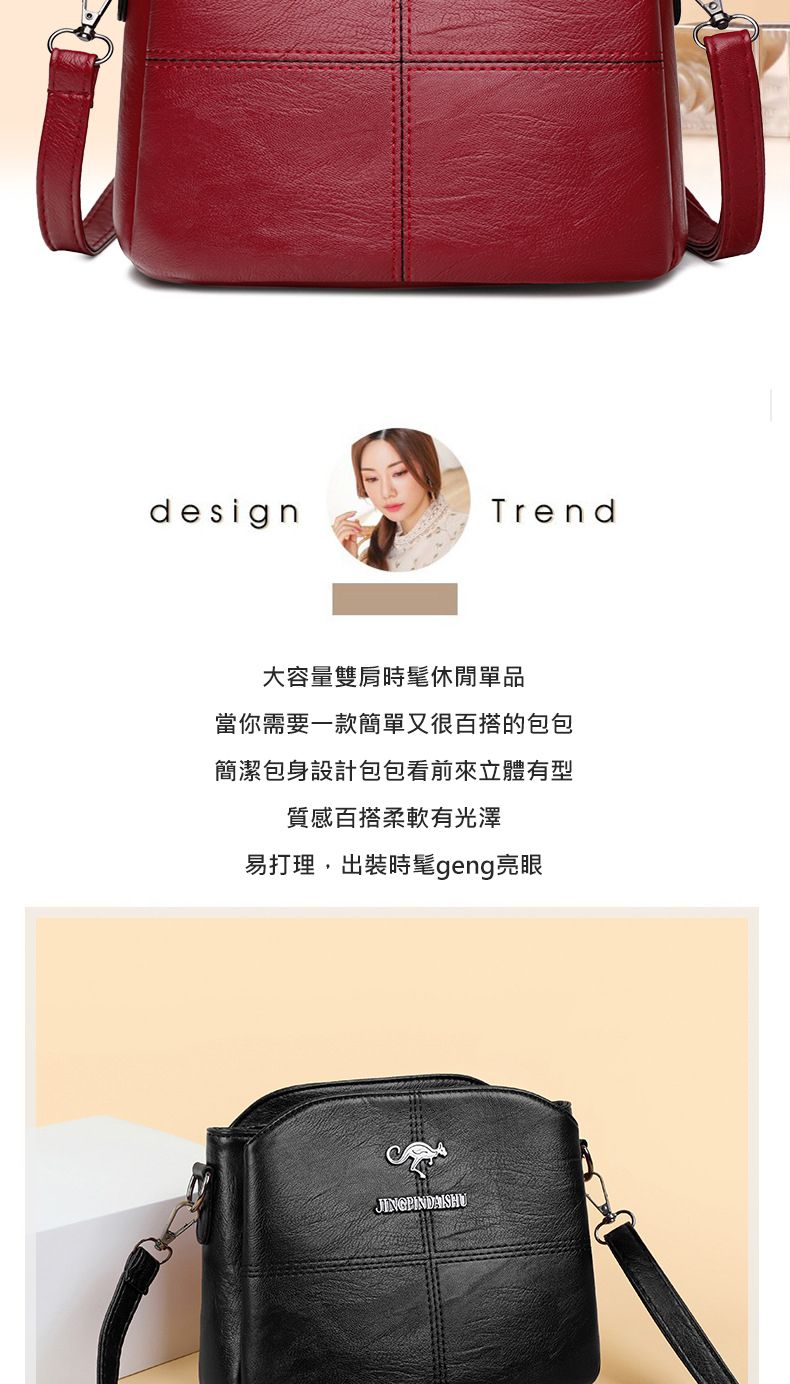 【時尚魅力!】柔軟有光澤質感女包【紅色】+【黑色】各一組(優惠400)