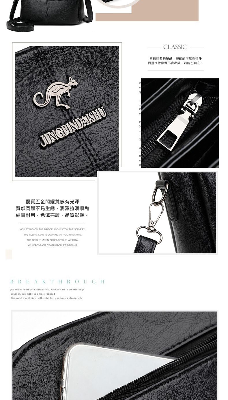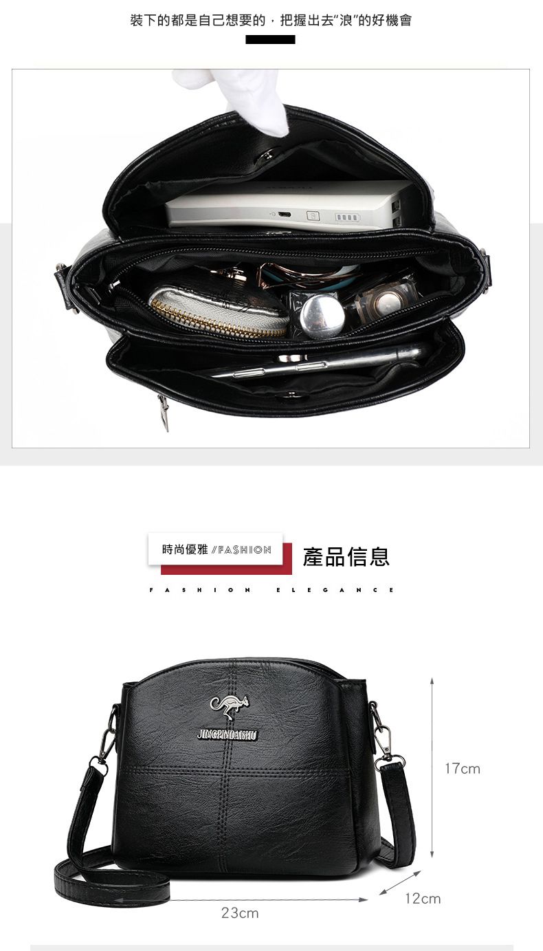 【時尚魅力!】柔軟有光澤質感女包【黑色】一組
