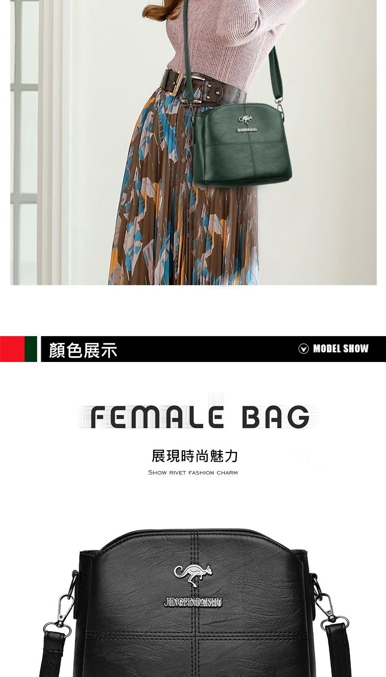【時尚魅力!】柔軟有光澤質感女包【綠色】+【黑色】各一組(優惠400)