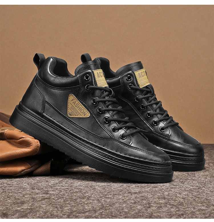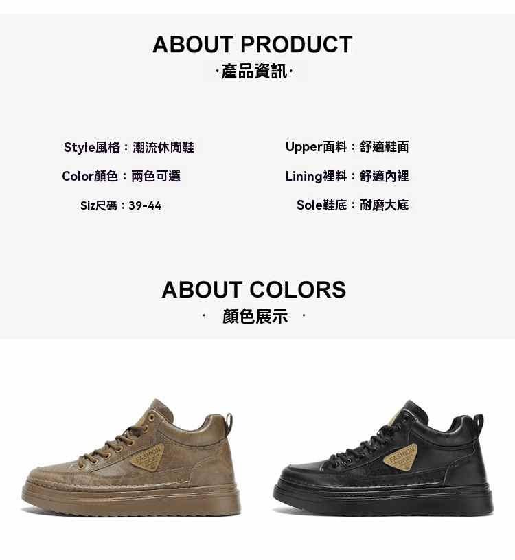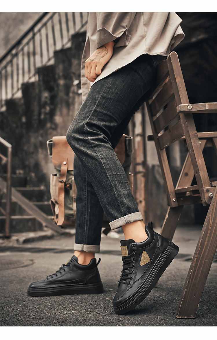 型男厚底增高休閒高幫馬丁靴【買一送一】【黑色】+【棕色】各一雙(到手兩雙,每雙均價549元!)