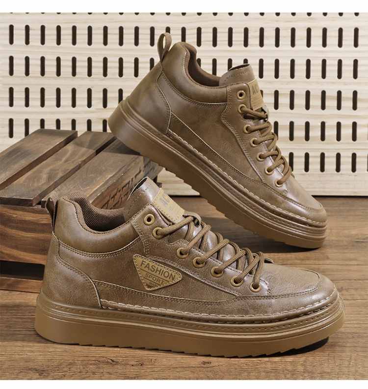 型男厚底增高休閒高幫馬丁靴【買一送一】【棕色】2雙(到手兩雙,每雙均價549元!)