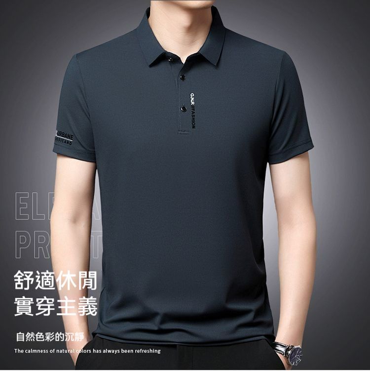 舒適休閒柔軟親膚冰絲POLO衫【買一送一】上青色+灰色各一件(到手兩件,均價每件649元)