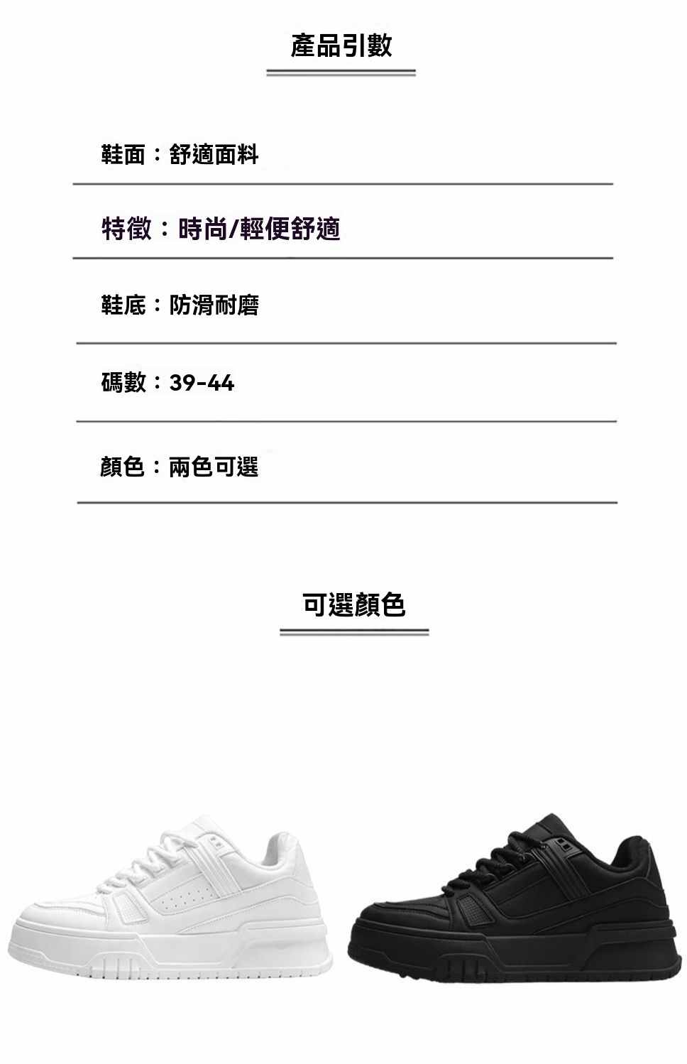 黑白經典兩色厚底增高百搭男鞋【黑色】+【白色】各一雙(到手2雙,每雙均價549元!)