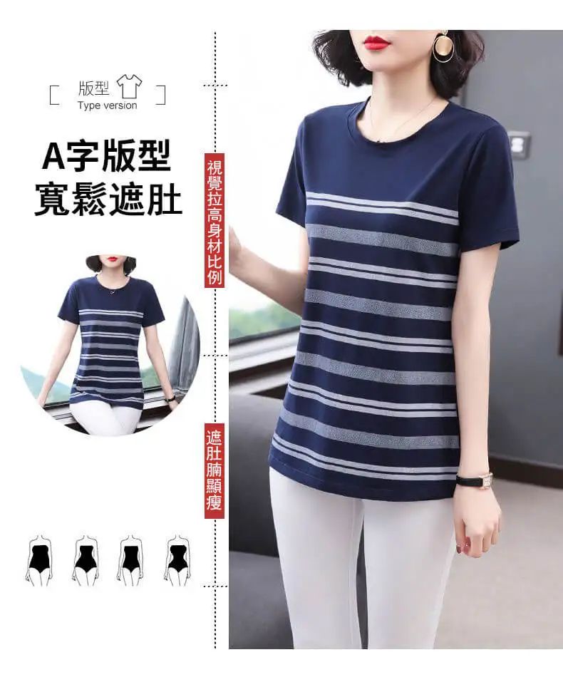 中年媽媽中長款條紋上衣【買一送一】【黑色】+【藍色】各一件(每件499元)