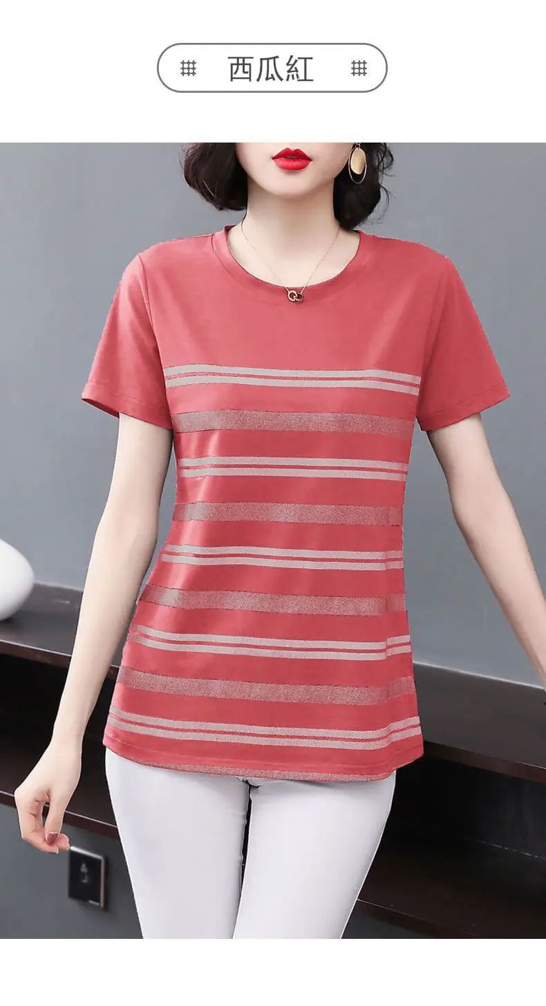 中年媽媽中長款條紋上衣【買一送一】【紅色】+【粉色】各一件(每件499元)