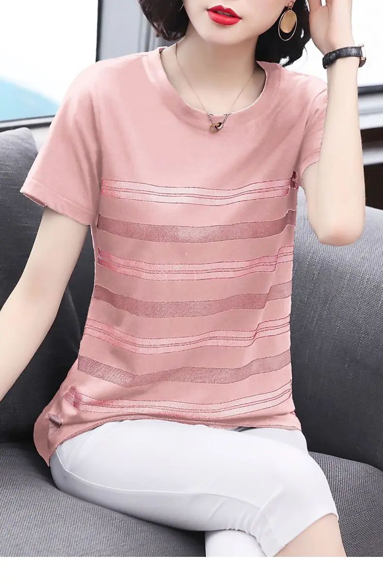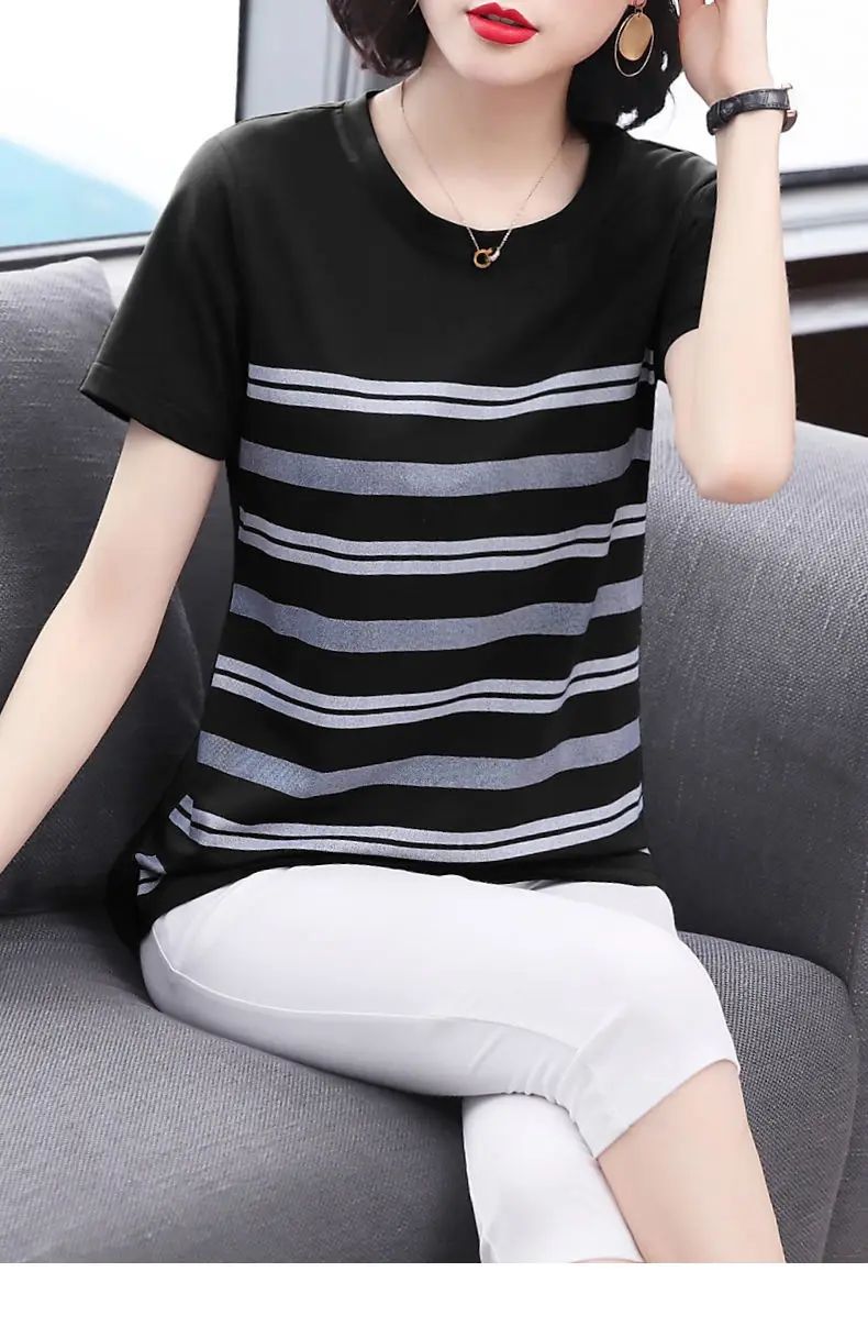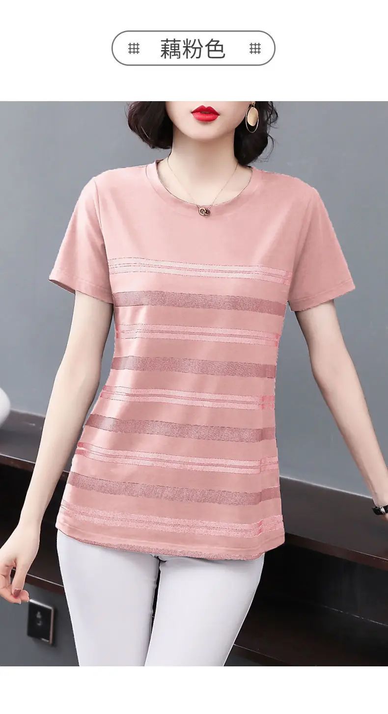 中年媽媽中長款條紋上衣【買一送一】【黑色】+【粉色】各一件(每件499元)