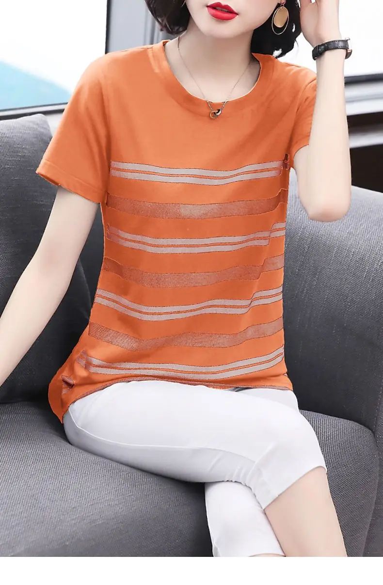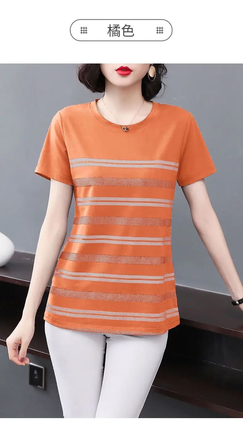 中年媽媽中長款條紋上衣【買一送一】【橘色】+【粉色】各一件(每件499元)