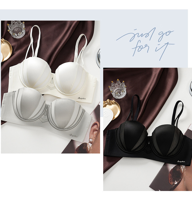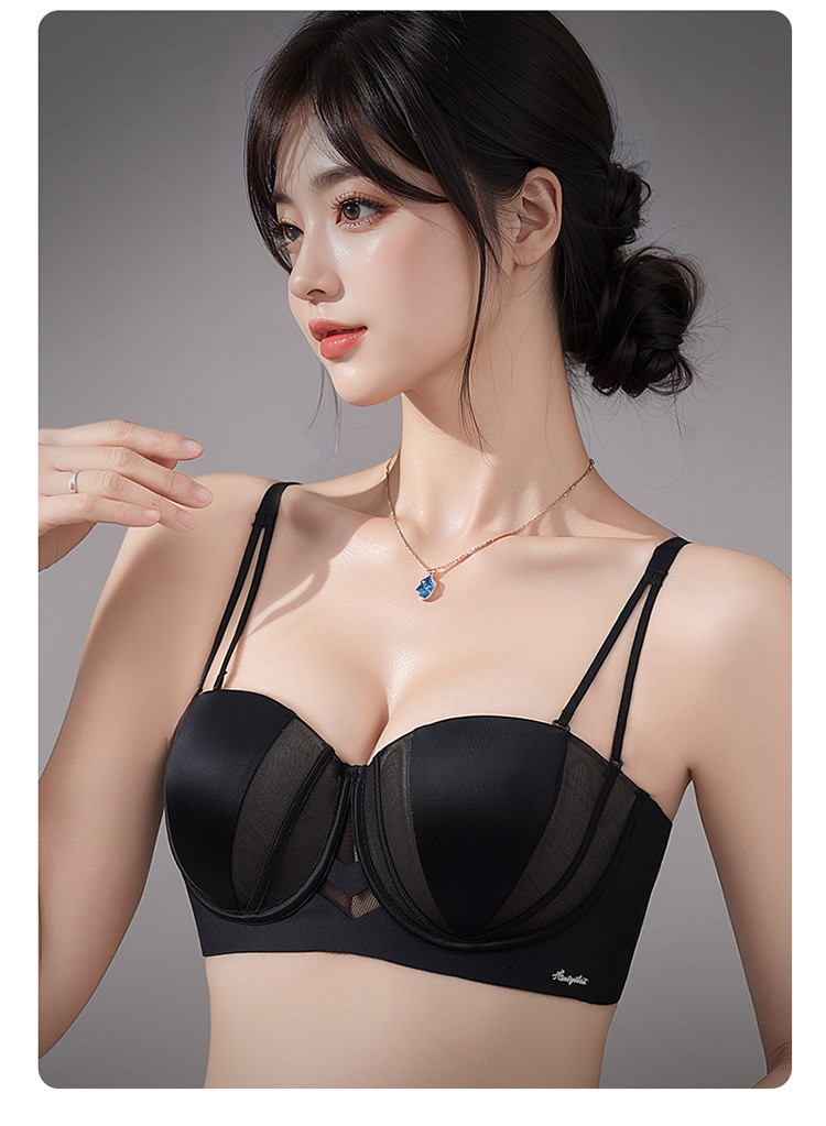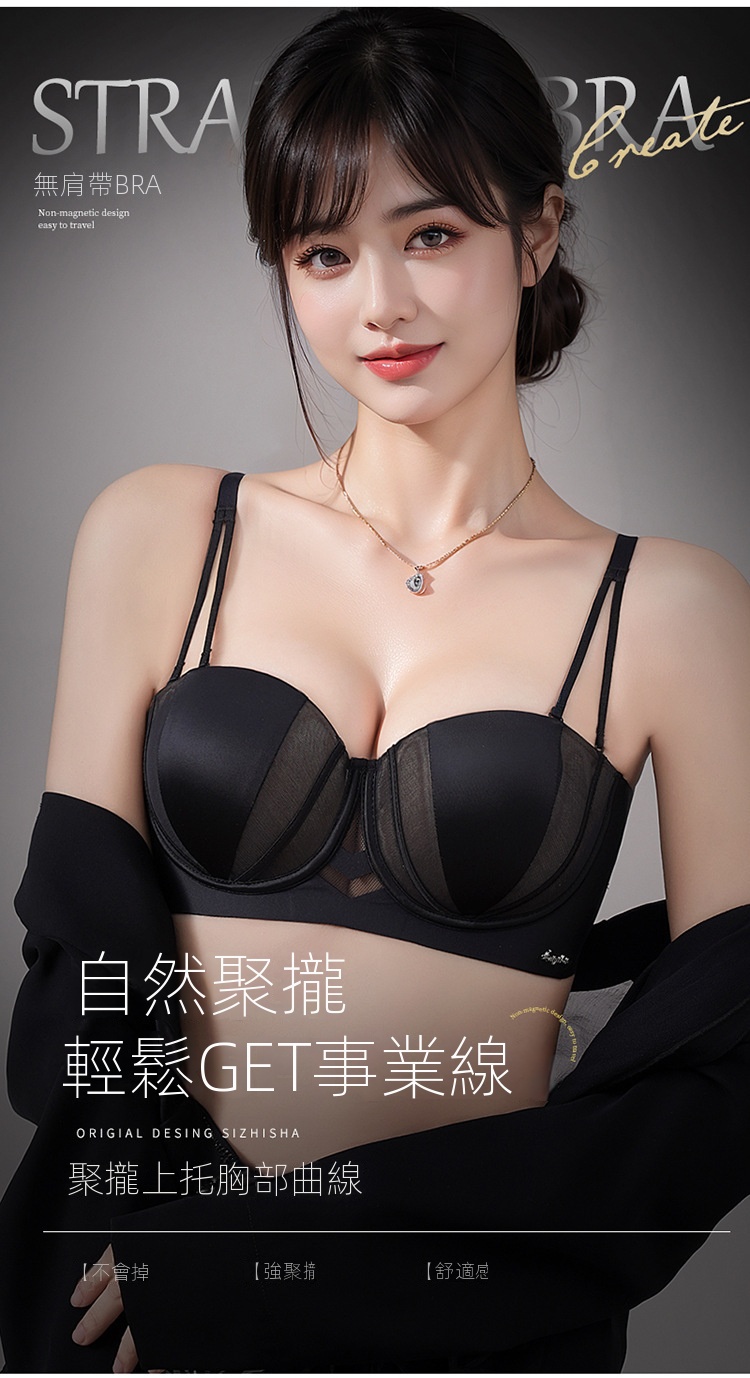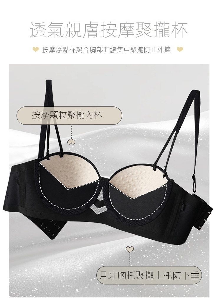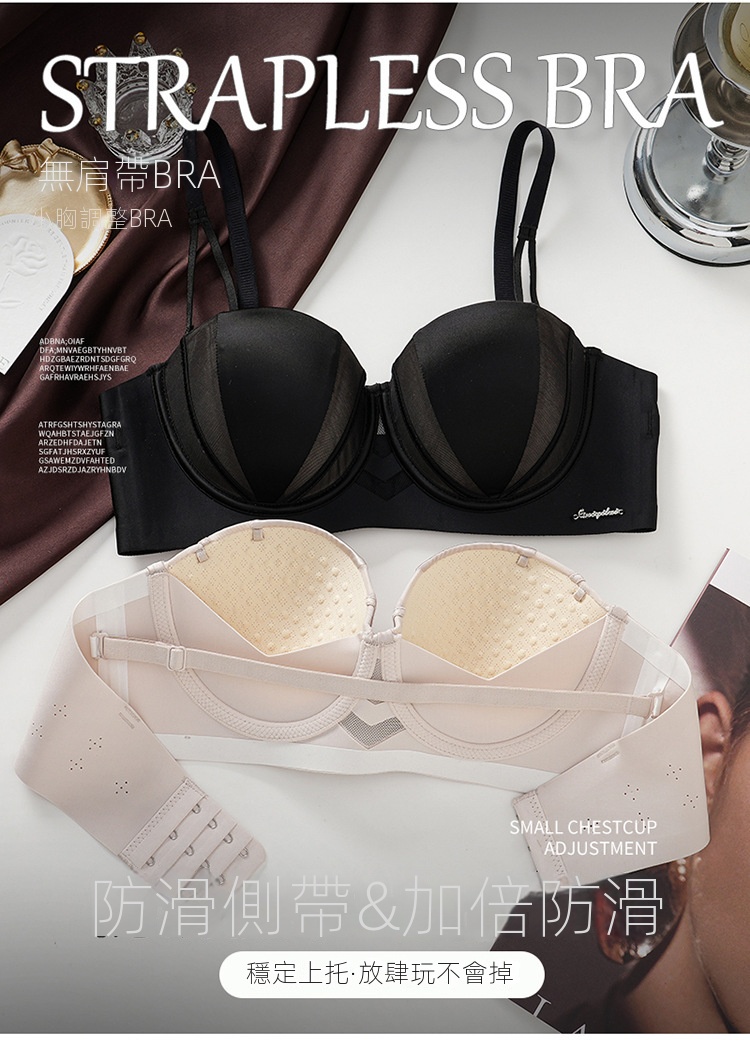 夏季抹胸可拆卸提拉無痕半杯無肩帶內衣【買一送一】黑色+淺灰色各一件(到手兩件,每件均價649元!)