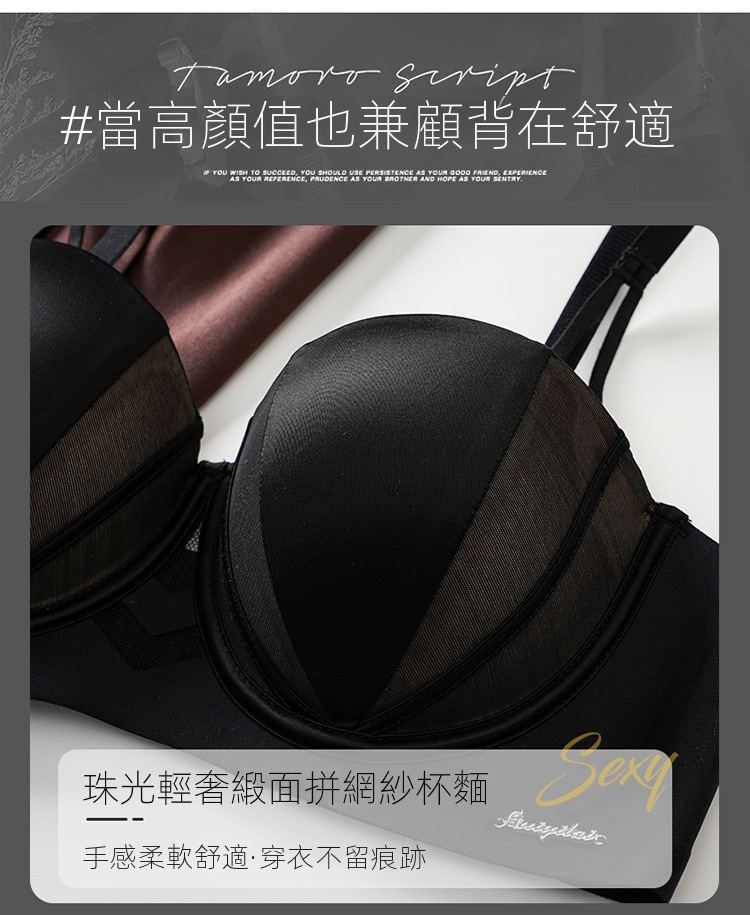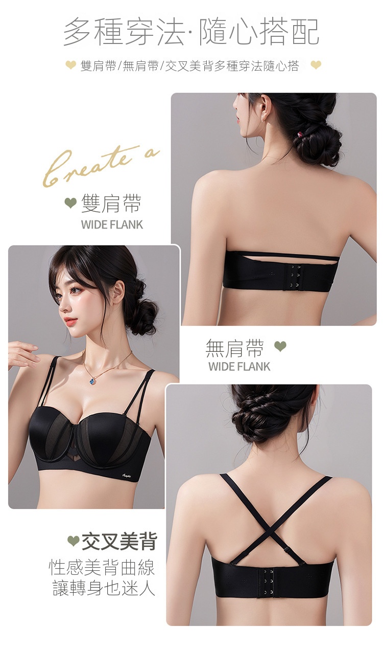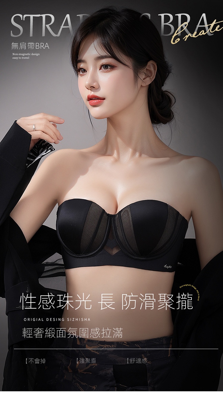 夏季抹胸可拆卸提拉無痕半杯無肩帶內衣【買一送一】黑色+香檳色各一件(到手兩件,每件均價649元!)