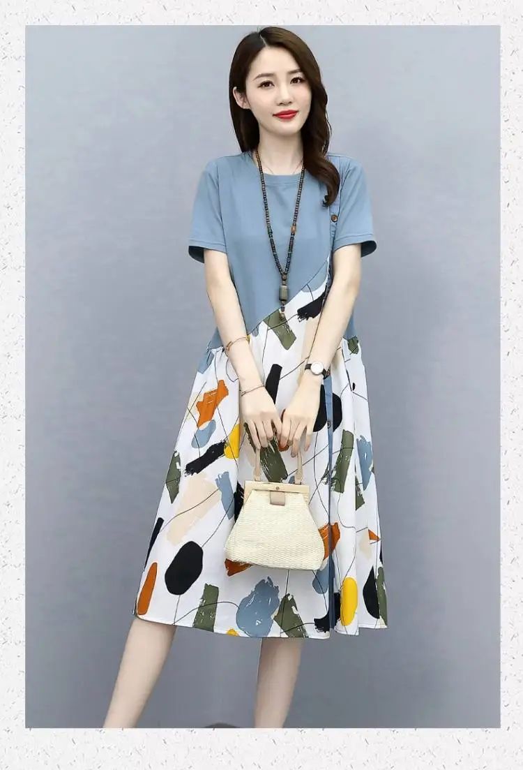 冰涼清爽拼接印花爆款連衣裙【買一送一】藍色+黑色各一件(到手兩件,每件均價549元)