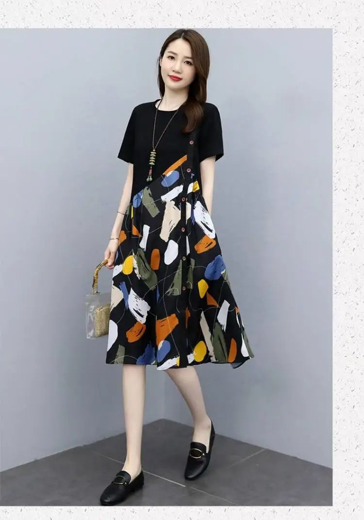 冰涼清爽拼接印花爆款連衣裙【買一送一】白色+黑色各一件(到手兩件,每件均價549元)