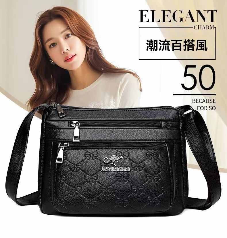 質感中年百搭女士單肩包黑色2組(優惠400,到手2組,每組均價498元!)