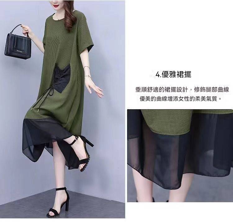 夏季顯瘦遮肉氣質拼接中長款連衣裙【買一送一】綠色+黑色各一件(到手兩件,每件均價549元)