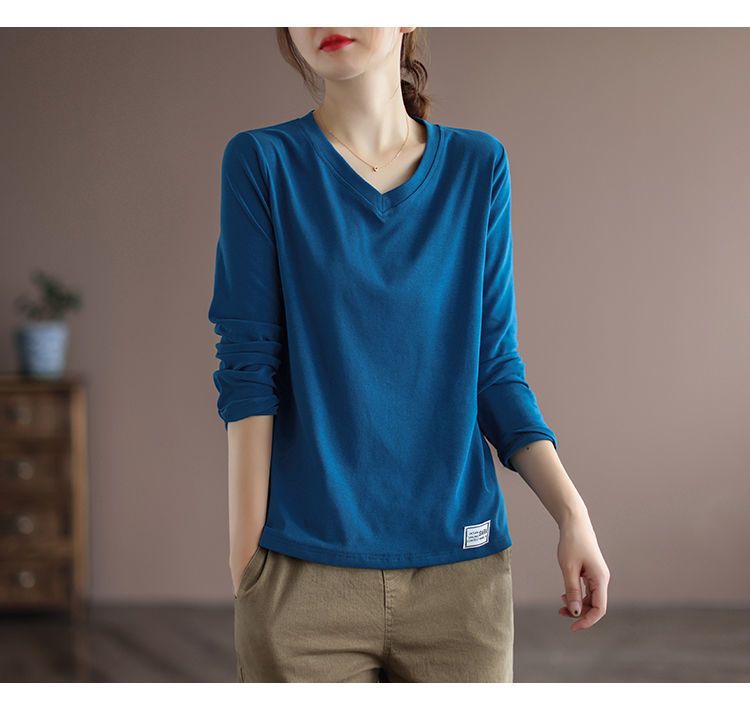 V領百搭女士純色長袖上衣【買一送二】【紅色】+【黃色】+【藍色】各一件(到手3件,每件均價333元!)