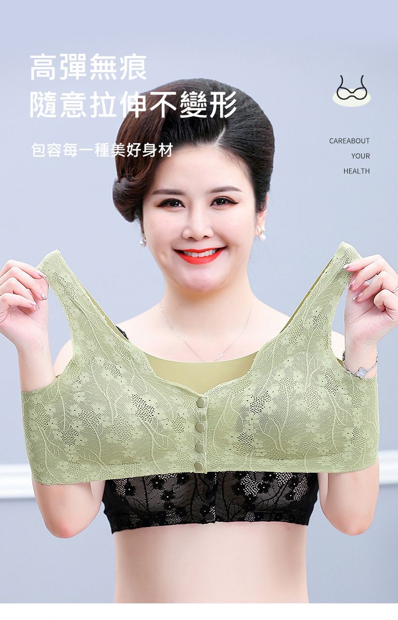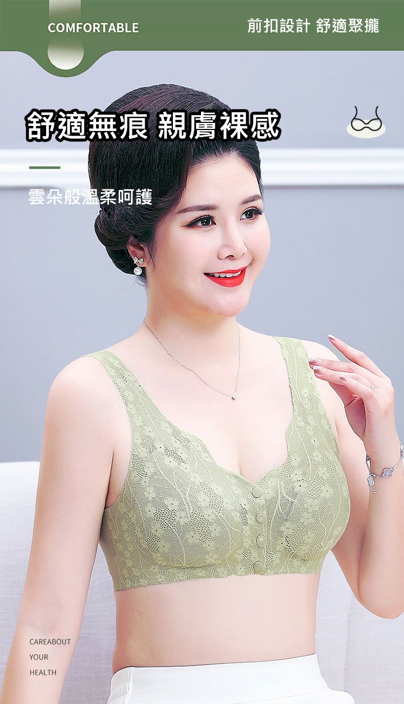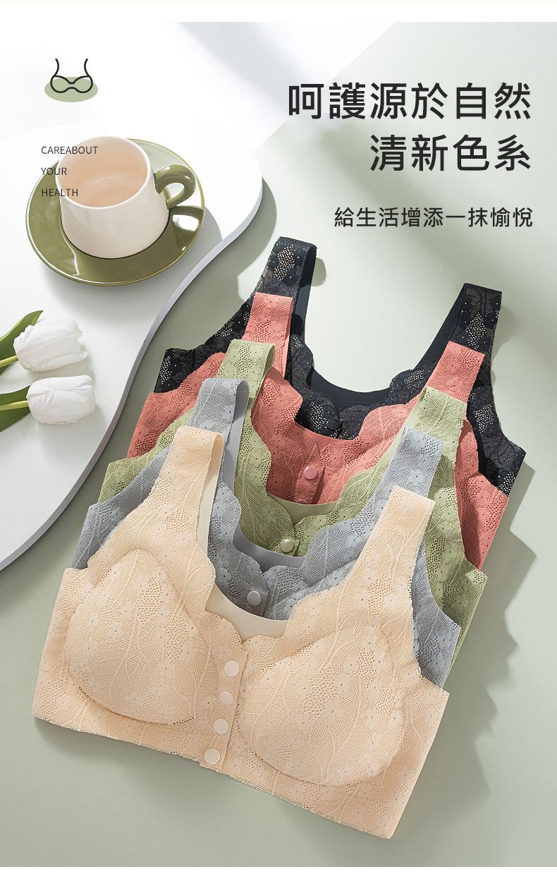 開扣設計文胸【買一送一】【綠色】+【磚紅色】各一組(每組499元)