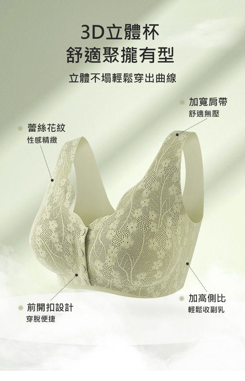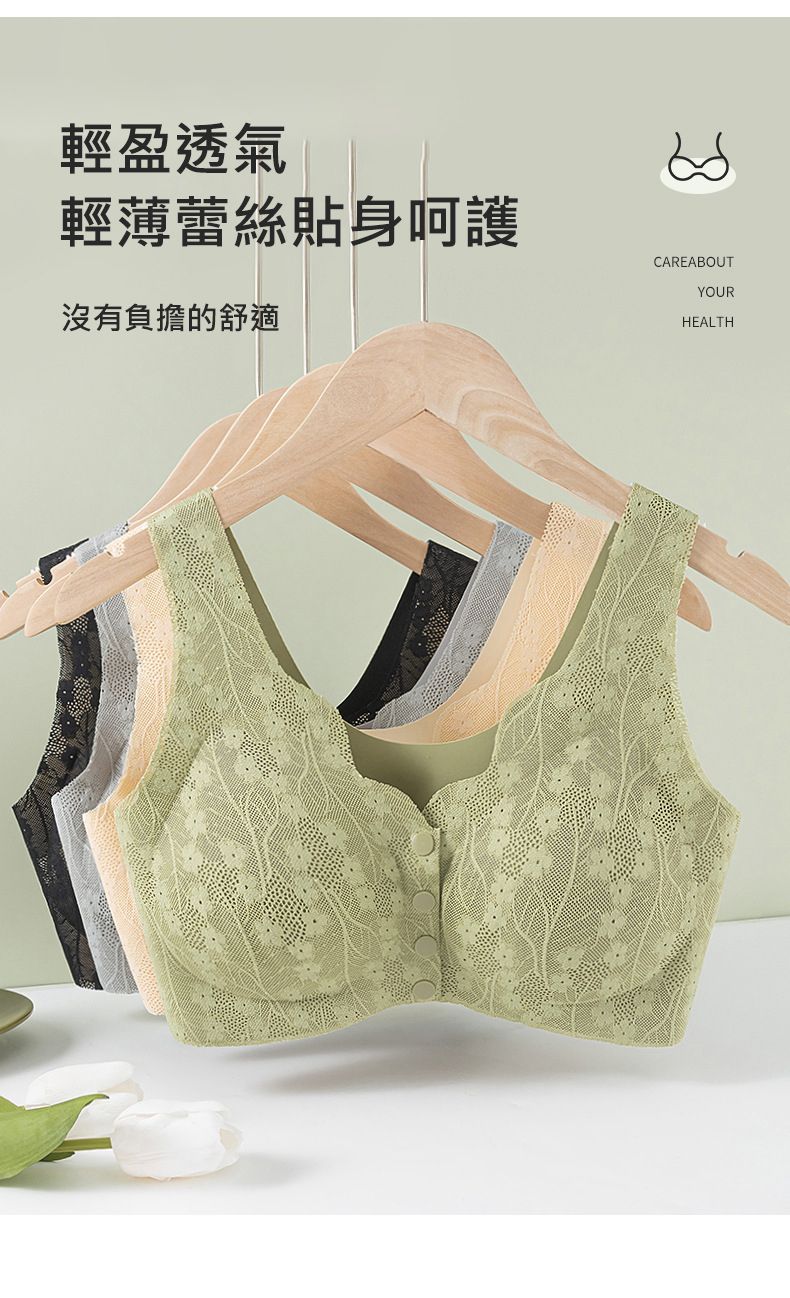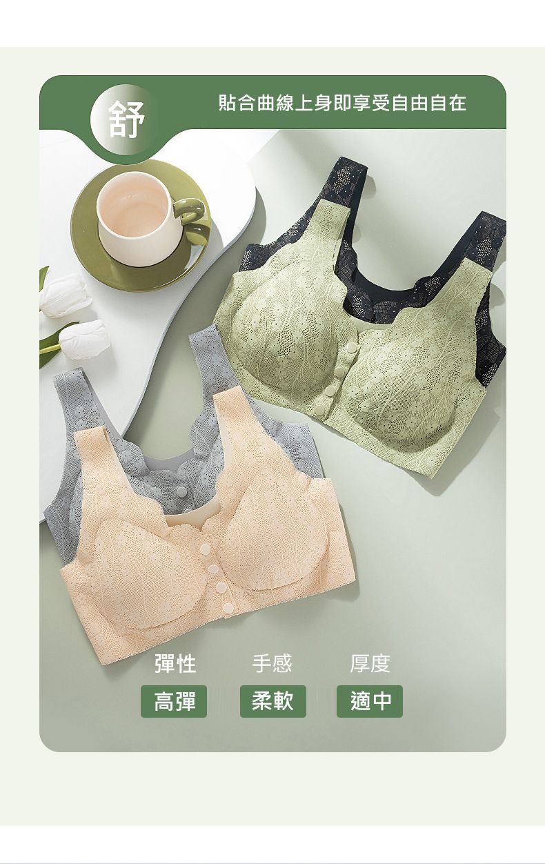 開扣設計文胸【買一送一】【綠色】+【膚色】各一組(每組499元)