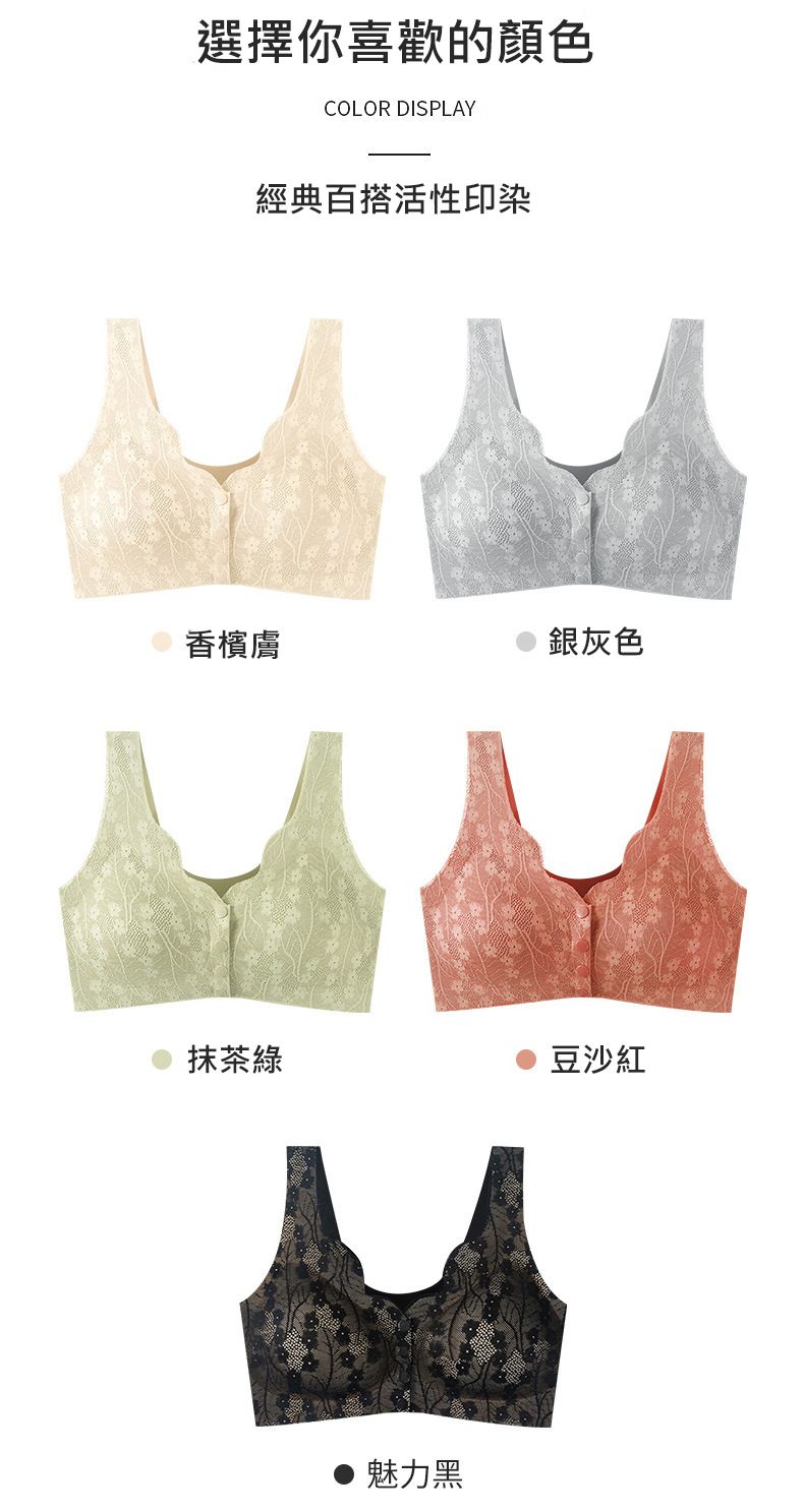 開扣設計文胸【秒殺5件!】【黑色】+【綠色】+【灰色】+【膚色】+【磚紅色】各一件(每件360元!)