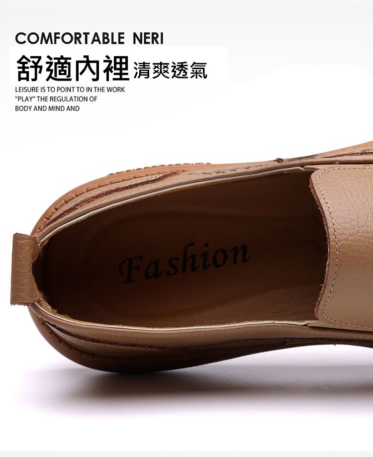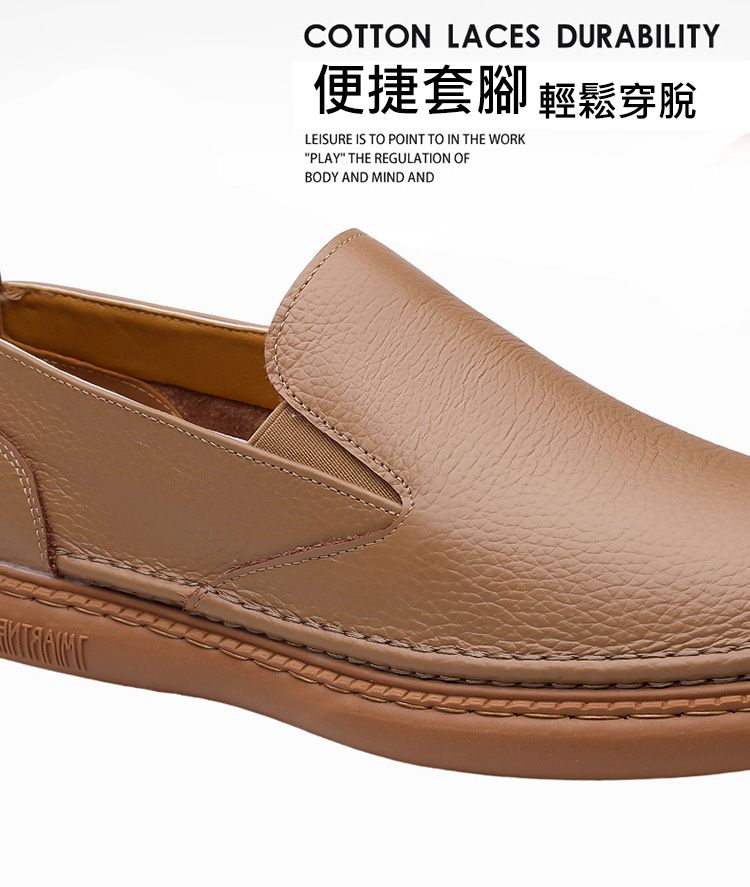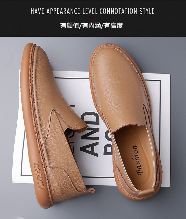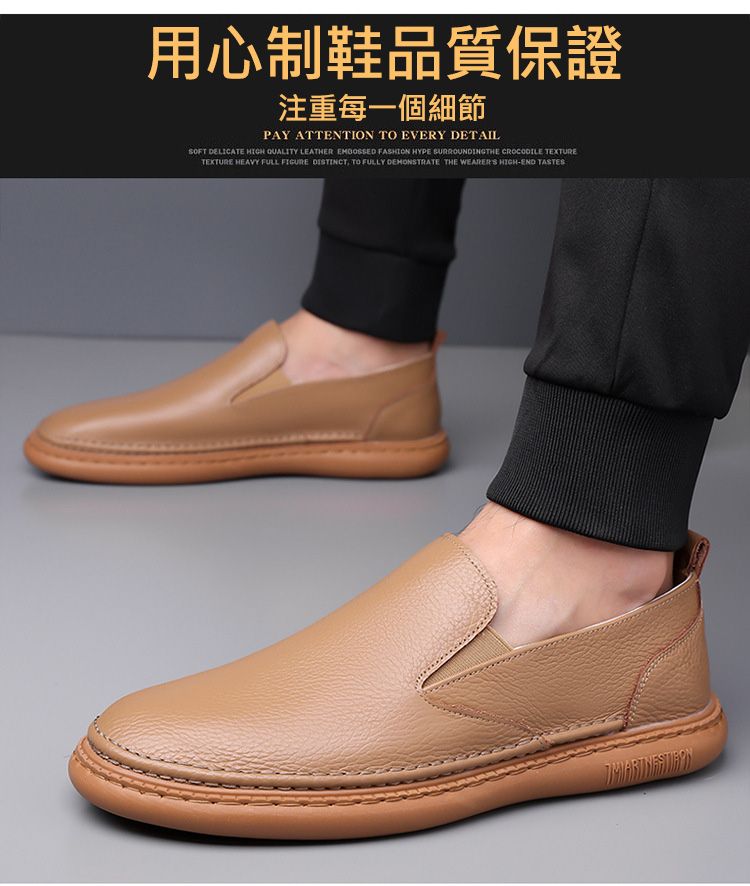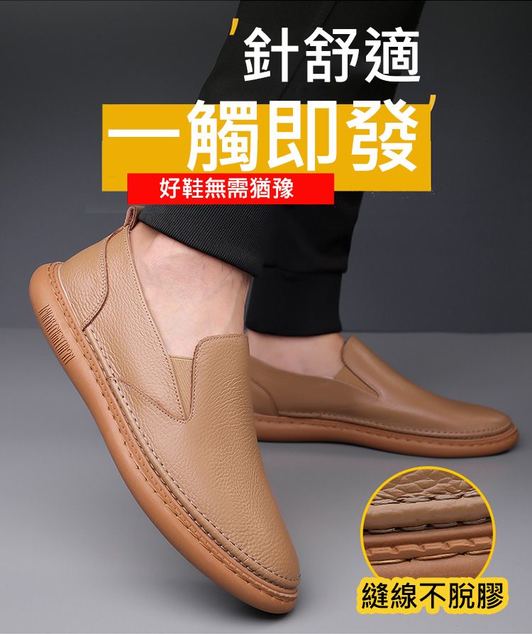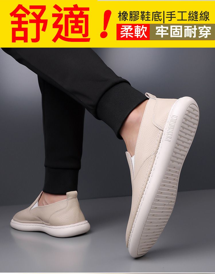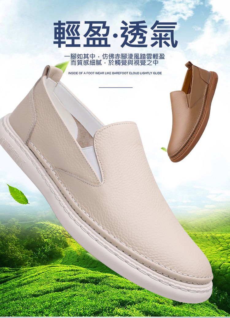 透氣懶人一腳蹬軟底休閒皮鞋【米色】+【棕色】各一雙(優惠400)