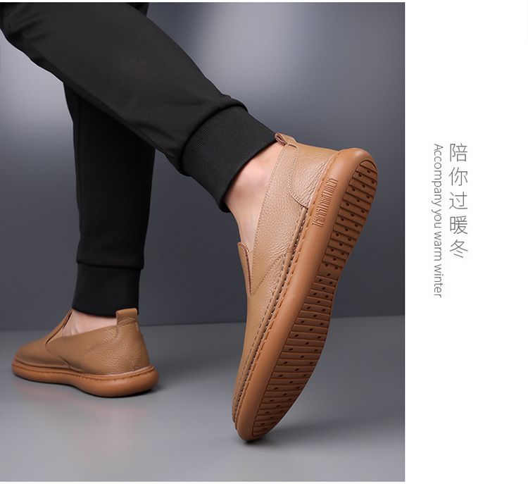 透氣懶人一腳蹬軟底休閒皮鞋【棕色】一雙
