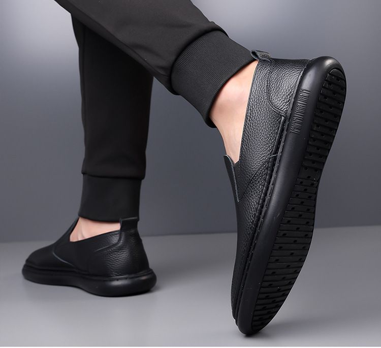 透氣懶人一腳蹬軟底休閒皮鞋【黑色】一雙
