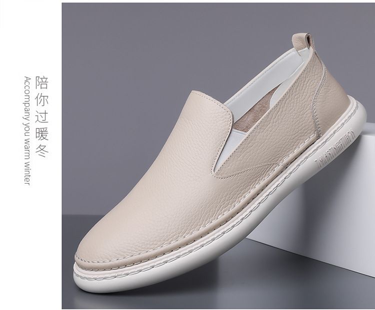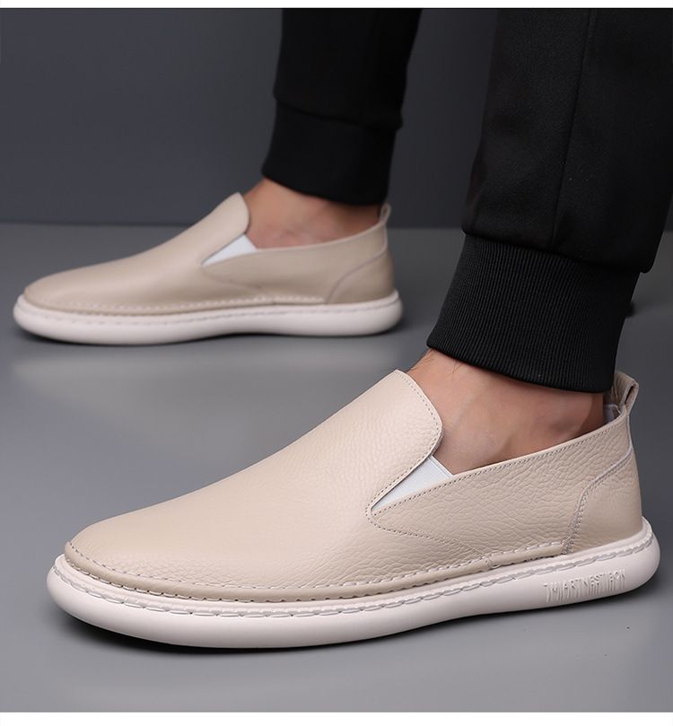 透氣懶人一腳蹬軟底休閒皮鞋【米色】一雙