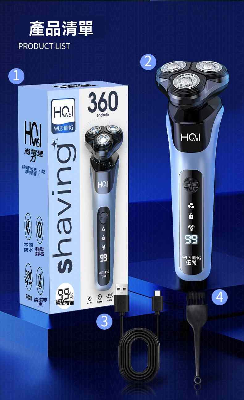 【低噪音!動力強!3D立體浮動刀頭!】智能led顯示三頭充電剃鬚刀