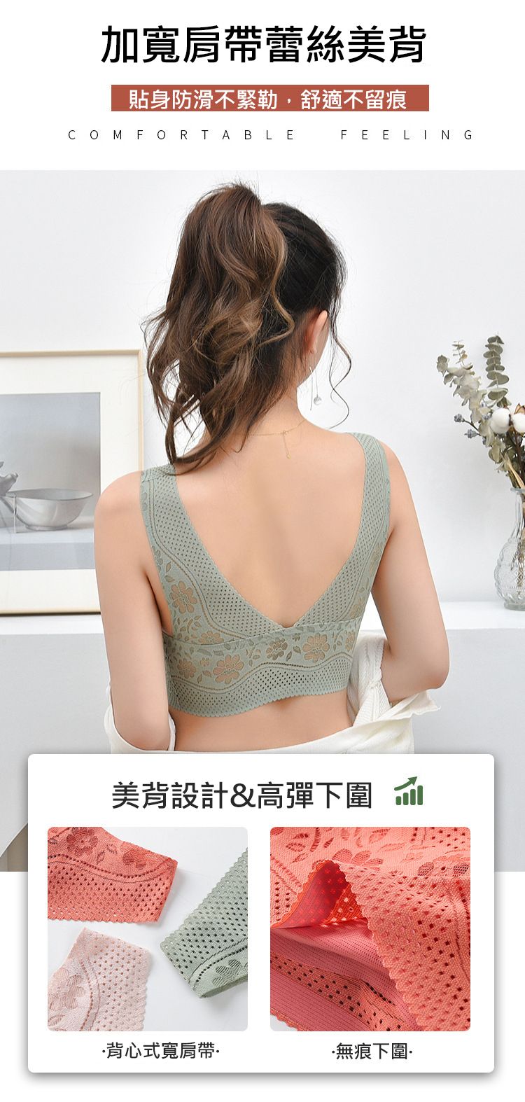 蕾絲美背帶胸墊無痕內衣【買一送二】膚色+綠色+桔紅色各一件(到手3件,每件均價333元!)