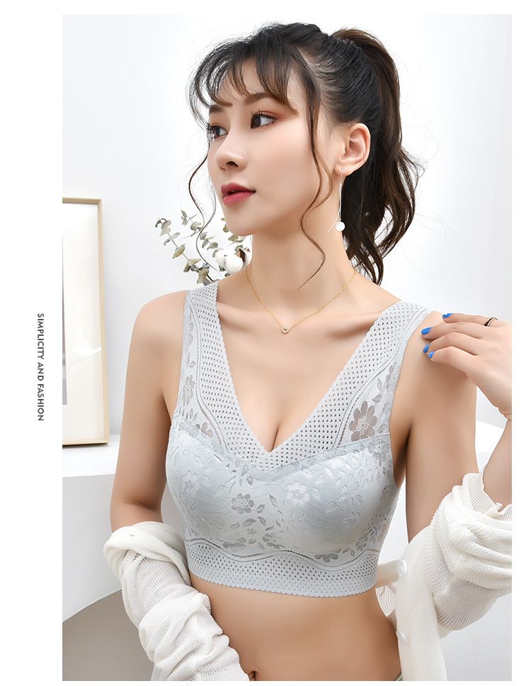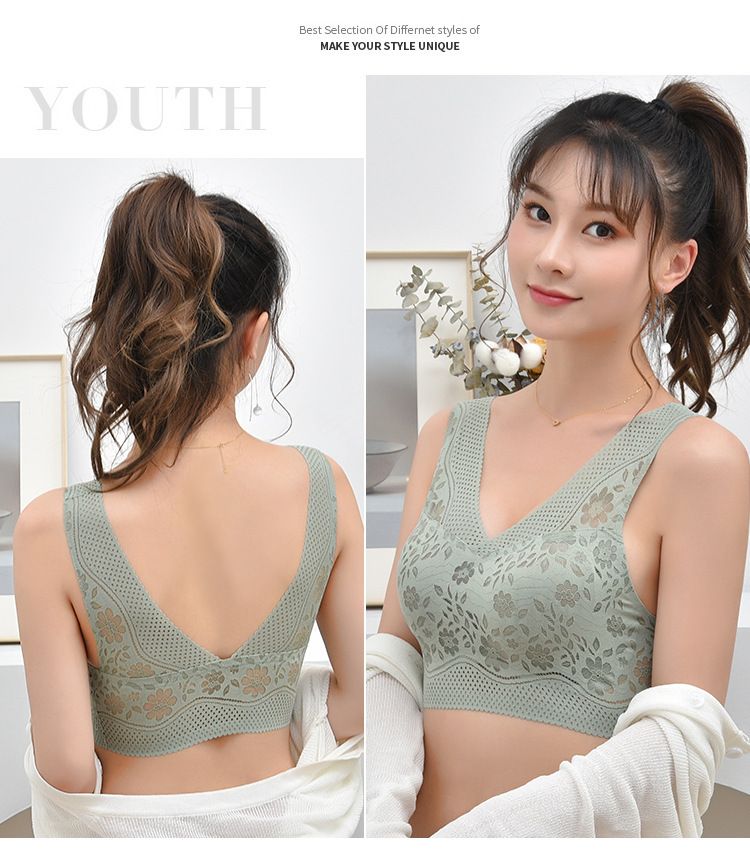 蕾絲美背帶胸墊無痕內衣【買一送二】灰色+綠色+豆沙色各一件(到手3件,每件均價333元!)