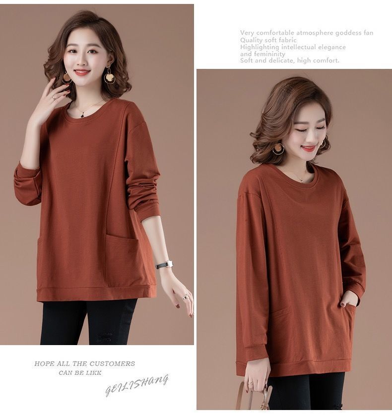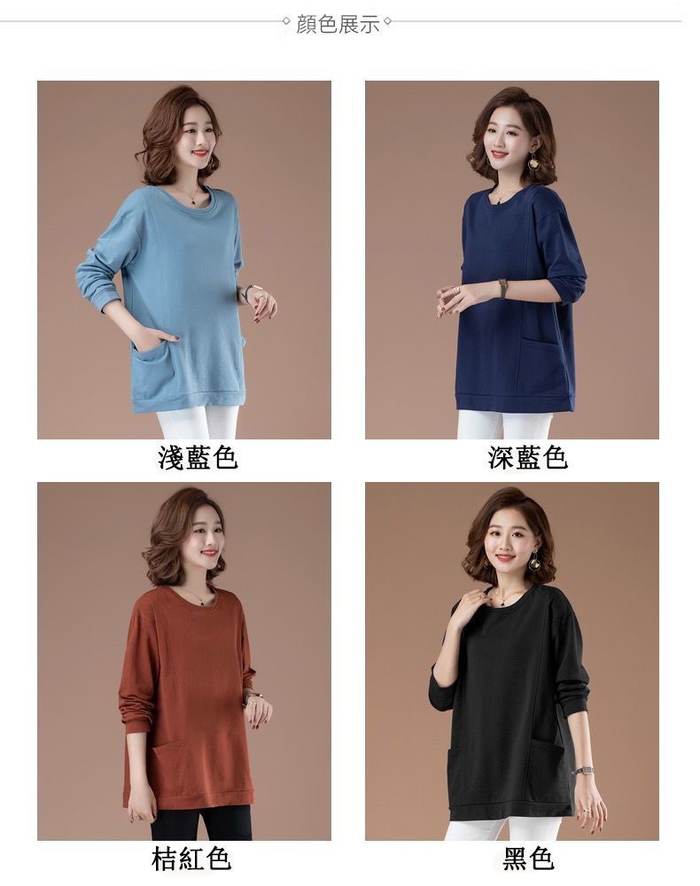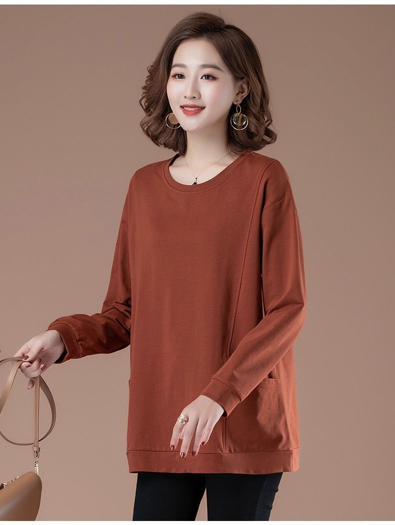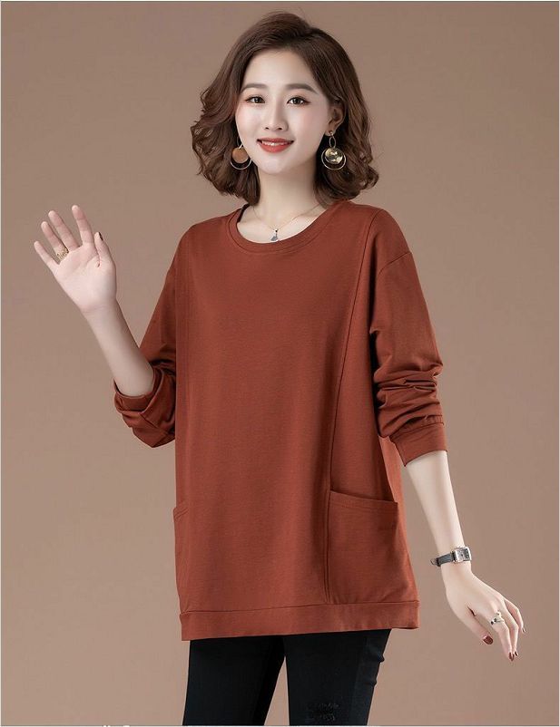 純棉新款女士長袖上衣【買一送一】【桔紅色】+【深藍色】各一件(每件低至649元)