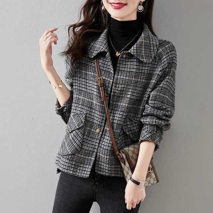 小香風短款格子粗花毛呢外套1件