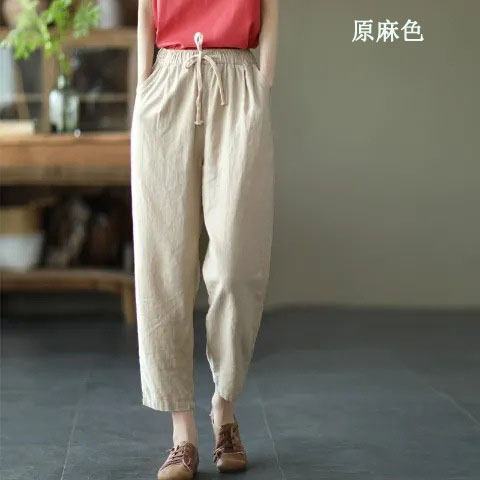 棉麻復古寬鬆純色百搭休閒九分褲【買一送一】【粉色】+【原麻色】各一件(到手兩條,每條均價549元)