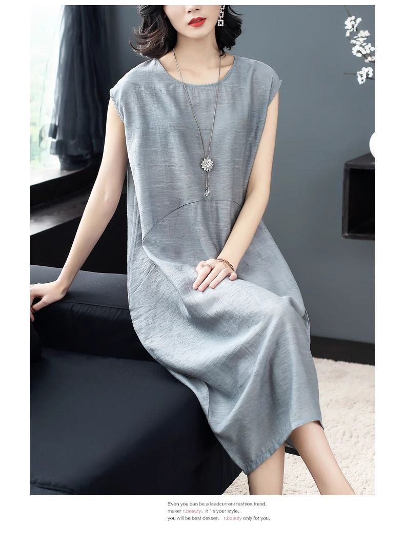 大氣簡約純色文藝中長款連衣裙【【買一送一】【銀灰色】兩件(到手兩件,每件均價549元)
