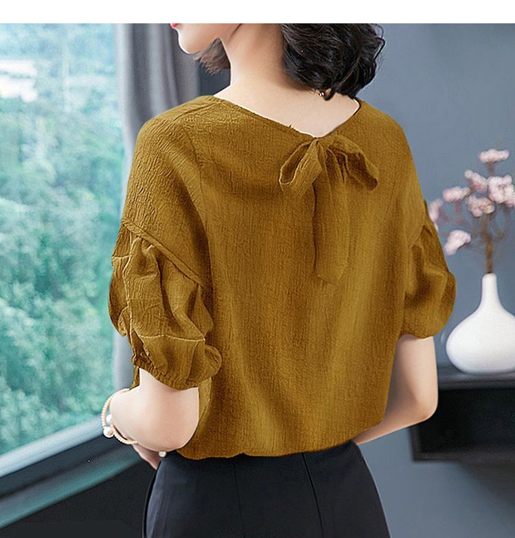 冰絲雪紡衫【買一送一】【枯黃色】+【孔雀綠】各一件(每件649元)