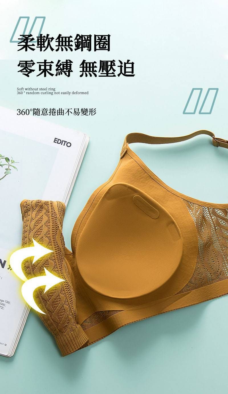 無束縛裸感無痕無鋼圈內衣【買一送一】【黃】+【咖】各一件(到手2件,每件均價499元!)
