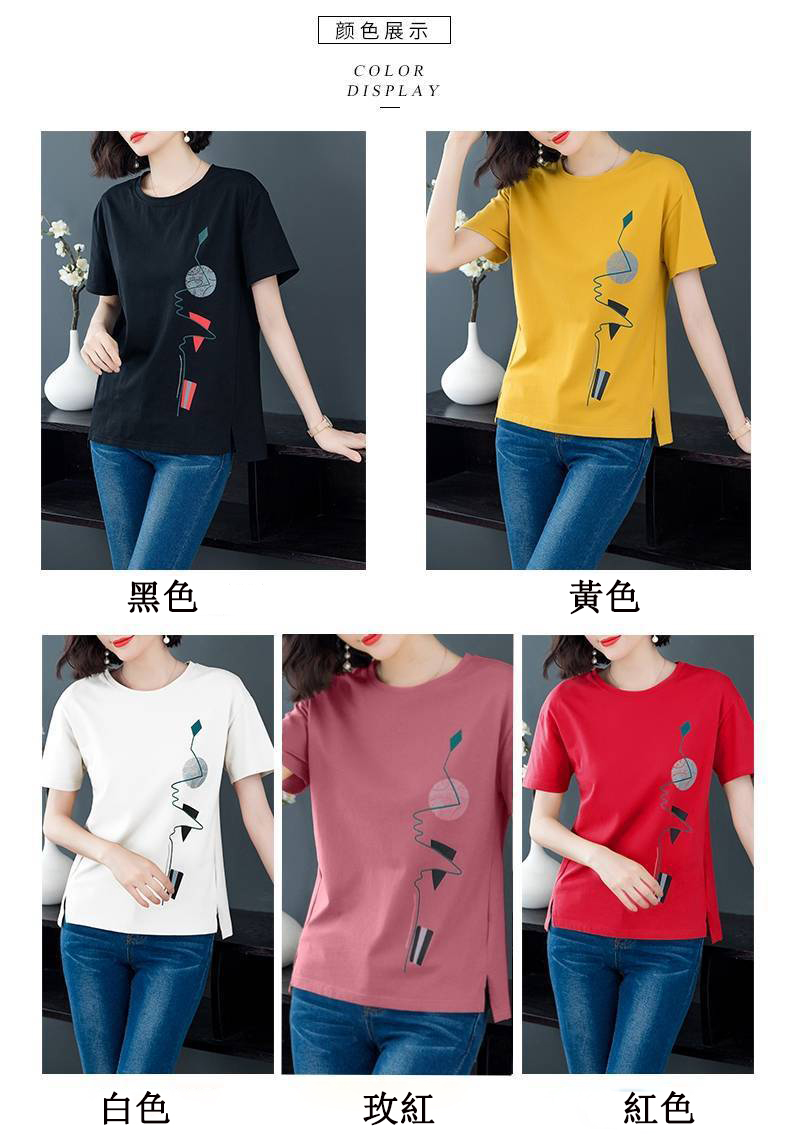 潮流氣質女士T恤【買一送二】【黃色】+【白色】+【玫紅色】各一件(到手三件!每件均價333元)